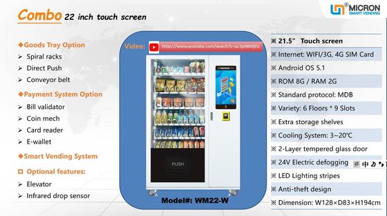 touch screen snacks and drinks combo elevator hot and cool direct push slot vending machine